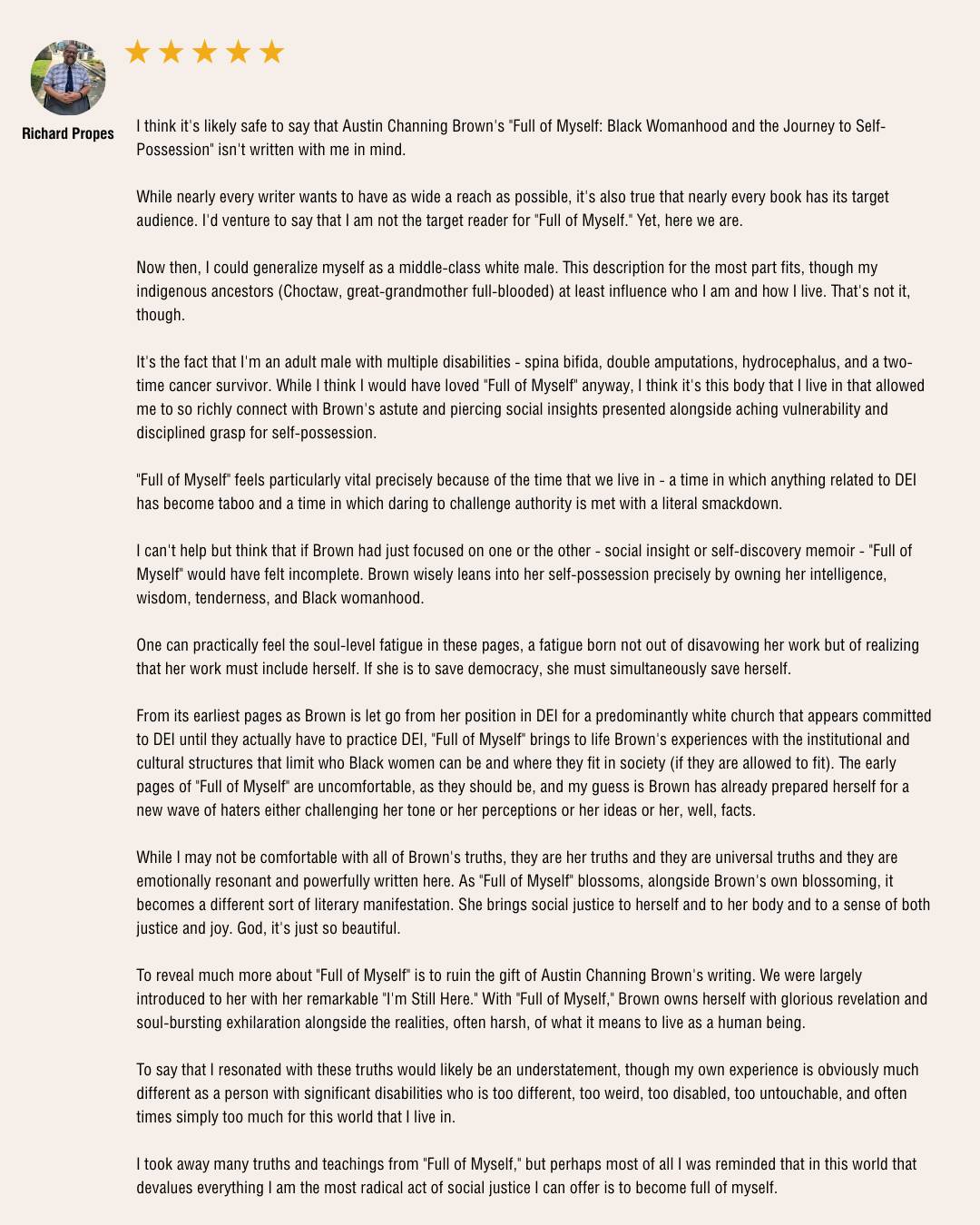 Austin Channing Brown is the author of NYT Bestseller and Reese Book Club pick, Im Still Here: Black Dignity in a World Made for Whiteness. Her next book, Full of Myself will release this fall.